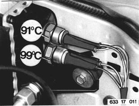 Temperature switch - 1st stage = 91° C (196° F); 2nd stage = 99° C (210° F).