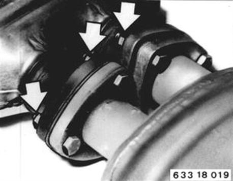 Vehicles after change point in 1982 REPLACING MUFFLER ASSEMBLY Remove exhaust assembly - see 18 00 019. Transfer upper heat shield. 18 00 019