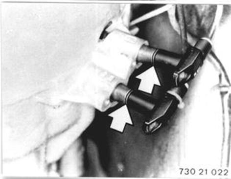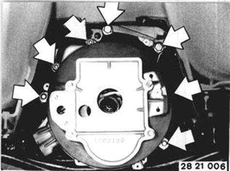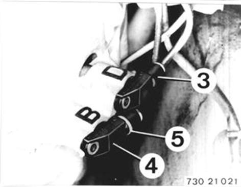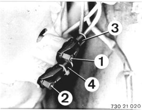 Vehicles after change point in 1982 REMOVING AND INSTALLING CLUTCH HOUSING Remove transmission 23 00 022. Cars with DME: Remove heat shield. Unscrew bolts (1 and 2). Pull out speed sensor (3) and reference mark sensor (4). 23 00 022