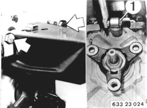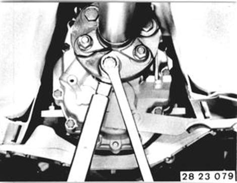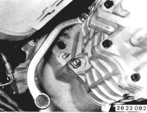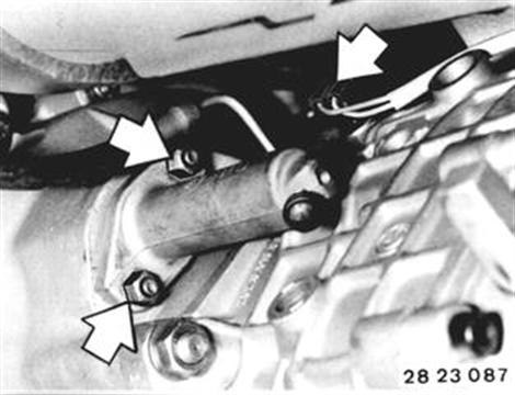 Vehicles after change point in 1982 REMOVING AND INSTALLING TRANSMISSION Remove exhaust assembly 18 00 020. Unscrew heat shield. Unscrew coupling on transmission. 18 00 020