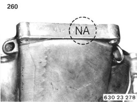 Vehicles after change point in 1982 INSTALLING EXCHANGE TRANSMISSION Remove transmission 23 00 022. Transmission Identification: BMW code* on front case section. Transmission Type 260. 23 00 022 * See Spare Part Microfiche
