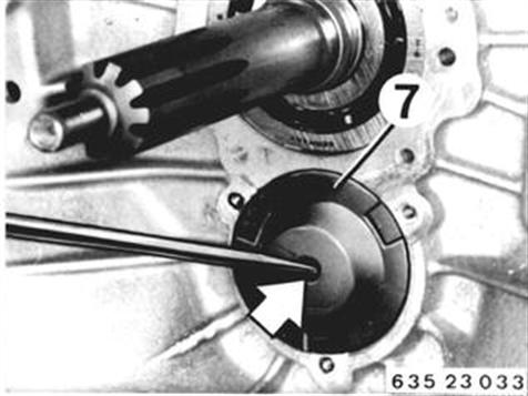 Punch through middle of sealing cover (7). Lift out sealing cover (7) with a screwdriver. Installation: Replace sealing cover. | ![]() |