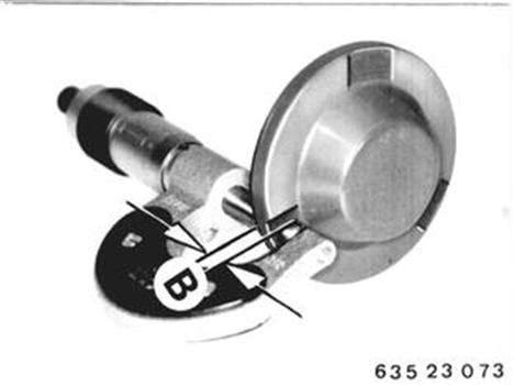 Measure wall thickness (B) of the sealing cover. Measure at the opening for the mounting tab. Example: ..A = 1.4 mm (0.055´´) - B = 0.9 mm (0.035´´) _________________ ........0.5 mm (0.020´´) shim thickness | ![]() |