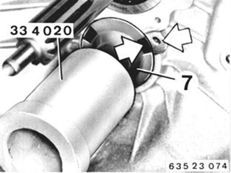 Drive in radial oil seal with Special Tools 23 1 380 and 00 5 500. Lubricate sealing lip with oil. | ![]() |