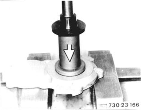 Vehicles after change point in 1982 REPLACING CLUTCH RELEASE GUIDE TUBE - Transmission Removed - Remove guide flange, see 23 11 623. Press out guide tube. 23 11 623