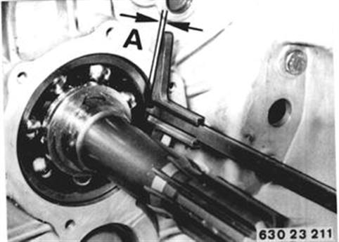 Installation: Adjust play to 0 ... 0.09 mm (0 to 0.0035´´). Determine thickness of spacer. Measure distance (A). | ![]() |