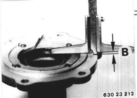 Measure distance (B). Example: ...A....3.0 mm (0.118´´) .- B....2.6 mm (0.102´´) __________________ .........0.4 mm (0.016´´) spacer thickness | ![]() |