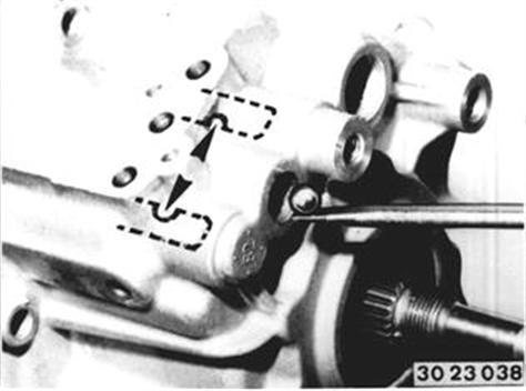 Coat case rear section in area of reverse gear shaft with Loctite No. 573. Surface must be thoroughly cleaned and dried of oil. | ![]() |