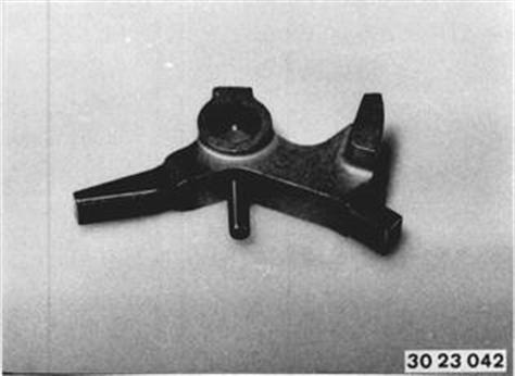 Install operating lever (6). Smooth side faces down. Install selector rail (7). Push on turning lock (5). Lock with 6 x 26 mm lockpin. | ![]() |