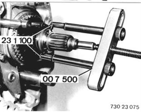 Pull bearing race off of output shaft with Special Tools 23 1 100 and 00 7 500. | ![]() |