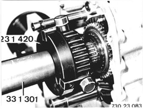 Pull guide sleewe and bearing inner race off of output shaft with Special Tools 23 1 420 and 33 1 301. | ![]() |