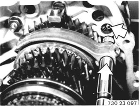 Pull off 5th gear with synchromesh ring and split needle bearing. | ![]() |