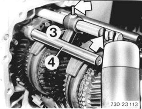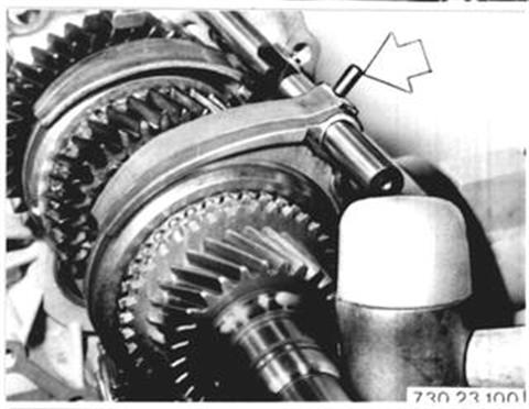 Drive 6 x 26 mm pin into 3rd/4th gear selector fork (counterhold). | ![]() |