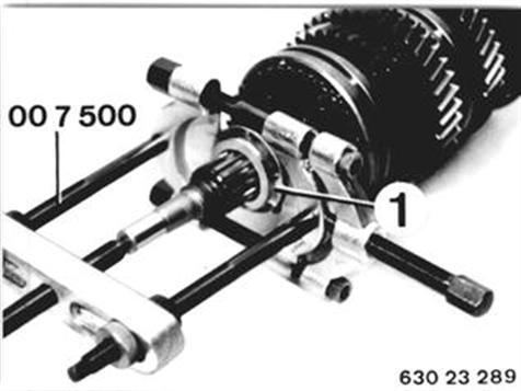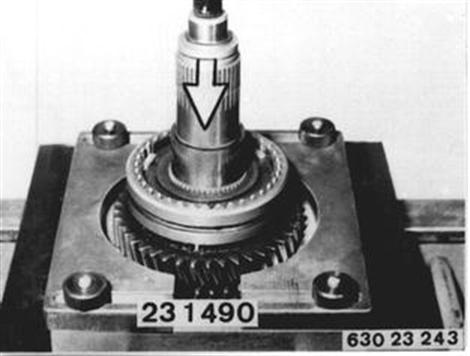 Press off 1st gear wheel with guide and operating sleeves with Special Tool 23 1 490. Take off needle bearing. Pressing-off force*. * See Specifications