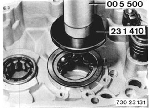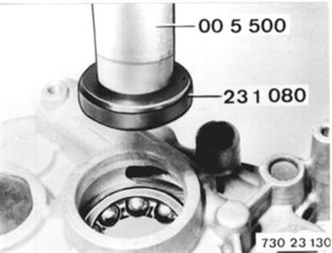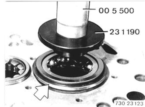 Drive out ball bearing with Special Tools 23 1 080 and 00 5 500. | ![]() |
