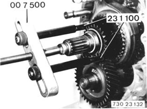 Pull ball bearing inner race off of output shaft with Special Tools 23 1 100 and 00 7 500. | ![]() |