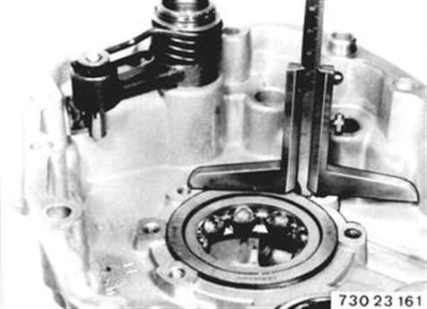 Vehicles after change point in 1982 REPLACING BEARINGS OF ALL TRANSMISSION SHAFTS - Transmission Removed - A) IInput Shaft, Layshaft in Case Front Section: Remove case front section 23 11 013. Drive ball bearing out of and into case with Special Tools 23 1 190 and 00 5 500. Important! Install ball bearing that collar faces out. 23 11 013