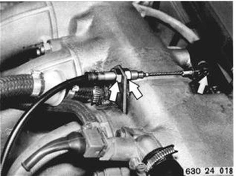 Vehicles before change point in 1982 REMOVING AND INSTALLING TRANSMISSION Disconnect accelerator cable and detach at counterholder. Installation: Adjust accelerator cable 24 00 004. 24 00 004