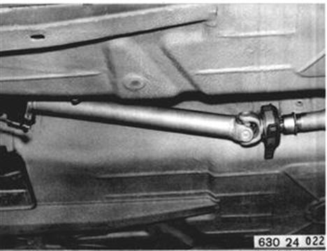 Remove heat shield. Detach center bearing. Installation: Preload center bearing forward by 2 mm (0.080´´). | ![]() |