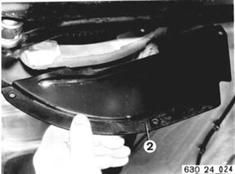 Version with Heat Shield: Detach heat shield at body. Disconnect guard (1) at propeller shaft. | ![]() |