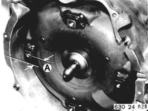 Important! Make sure torque converter has correct installed position before installing transmission. Drive dogs must be below case edge by distance (A) = approx. 9 mm (0.354´´). | ![]() |