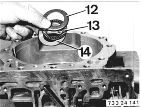 Remove angeld washer (12), axial bearing (13) and thrust washer (14). | ![]() |