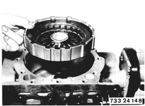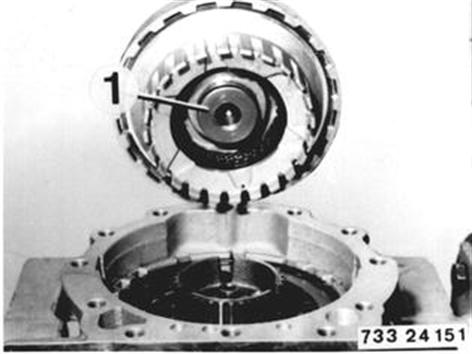 Remove plate carrier (4) for clutch A with angled washer (5), axial bearing (6) and thrust washer (7). | ![]() |