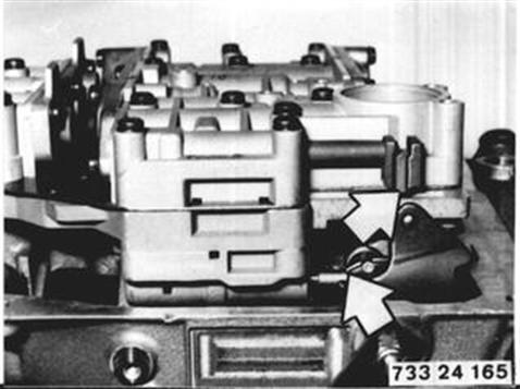 Mount valve body that selector valve can be connected in operating finger of pawl. This requires pulling throttle cable slightly, so that accelerator cam does not clamp on throttle pressure valve. | ![]() |