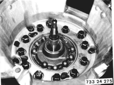 Unscrew converter bell housing wiht transfer plate. Only remove the inner bolts for this purpose. Only loosen the outer bolts. | ![]() |