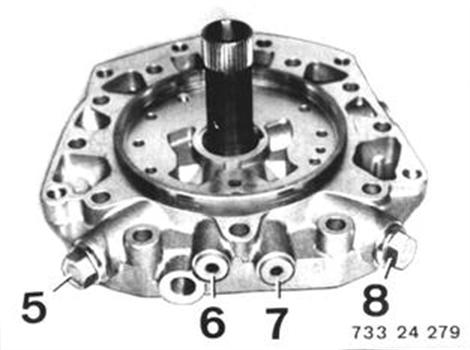 Transfer plugs (5 ... 8). Tightening torque*. Check seals, replacing if necessary. * See Specifications