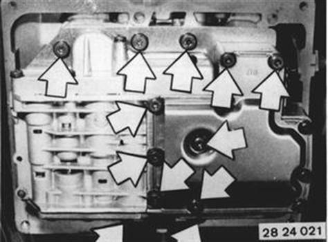 Vehicles after change point in 1982 REMOVING AND INSTALLING VALVE BODY Remove oil pan 24 11 000. Remove valve body. 24 11 000