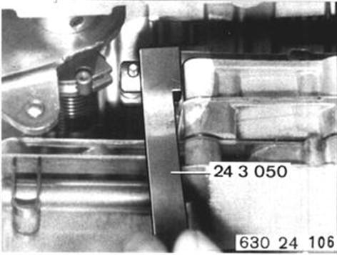 Tighten valve body bolts only finger tight. Align valve body with Special Tool 24 3 050. If this special tool is not available, distance from valve body case to pin in throttle pressure piston should be 11.5 mm (0.453´´). Tighten valve body bolts. | ![]() |