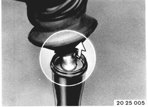 Vehicles after change point in 1982 DISASSEMBLING/ASSEMBLING SHIFT LEVER - Sheet Steel Shift Console - Remove shift lever 25 11 000. Lift out wire snap ring. 25 11 000