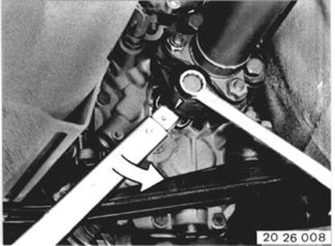 Front Universal Joint Version: Unscrew propeller shaft on transmission. Installation: Replace stop nuts. Align cross member if necessary and tighten nuts with a torque wrench. Tightening torque*. * See Specifications
