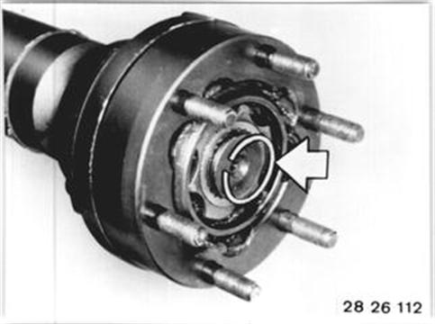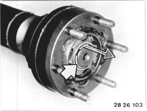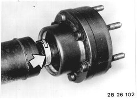 Vehicles after change point in 1982 REPLACING CONSTANT VELOCITY JOINT FOR PROPELLER SHAFT Remove propeller shaft assembly - see 26 11 000. Remove hose clamp. 26 11 000