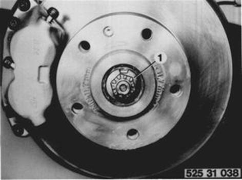 Vehicles before change point in 1982 ADJUSTING WHEEL BEARING PLAY Remove and install end cap 31 21 050. Remove cotter pin and unscrew castle nut. 31 21 050