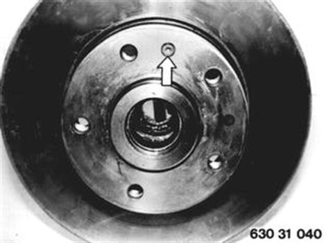Vehicles before change point in 1982 REPLACING WHEEL HUB - Wheel Hub Removed - Unscrew bolt. Take brake disc off of wheel hub. Installation: Tightening torque¹). Check taper roller bearing and shaft seal, replacing if necessary. ¹) See Specifications