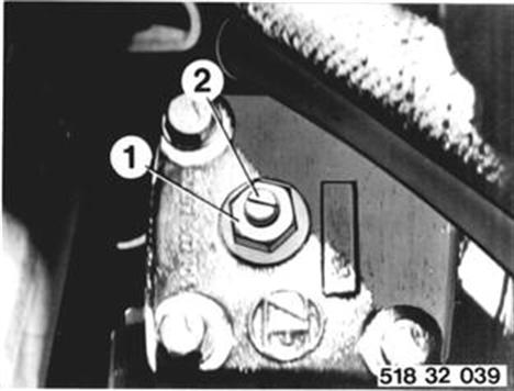 Vehicles after change point in 1982 ADJUSTING PRESSURE POINT Requirements: Steering gear and mounts/joints of steering column in perfect condition. Remove cotter pin and unscrew castle nut. Pry tie rod off of steering drop arm with Special Tool 32 2 040. Installation: Tightening torque*. Lock castle nut with cotter pin. On new type replace selflocking nut. * See Specifications