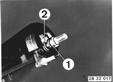 Pull steering spindle (1) and lower bearing (2) out of outer tube. | ![]() |