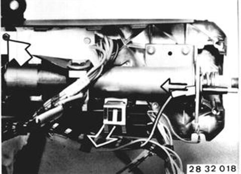 Press casing upper section away from steering tube. Turn ignition key in "start" direction and pull out complete steering lock. | ![]() |