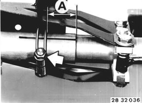 Loosen clamp. Installation: Check distance (A) from clamp to end of outer tube. A = 42 to 45 mm (1.653 to 1.772´´). Tighten clamp only after screwing outer tube on casing upper section. Tightening torque*. * See Specifications of Group 32