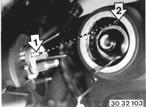 Adjusting Center Position When Necessary. Press down spring (1). Turn contact ring clockwise or anticlockwise against stop. Turn back about 3 turns until the arrows for center position are aligned. Release spring (1). | ![]() |