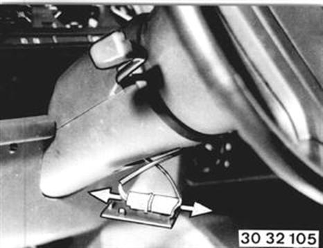 Vehicles after change point in 1982 REMOVING AND INSTALLING STEERING WHEEL (SRS) Caution! Conform with safety regulations. Improper handling could cause unwanted activation of SRS and in turn lead to injury!@L Disconnect battery and cover negative pole or terminal. Lift cap out of lower steering column casing section and disconnect plug. | ![]() |