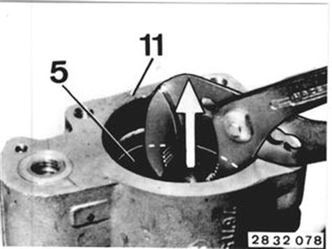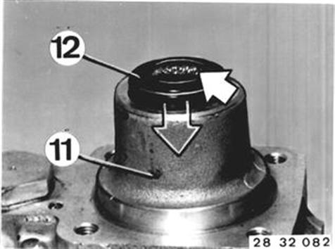 Assembling: Lubricate all parts with hydraulic fluid. Pack radial oil seal (12) between sealing lip and dust lip with grease and install seal in housing (11) with a suitable mandrel (sealing lip faces in).