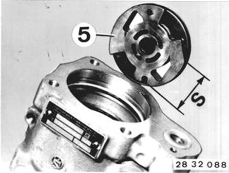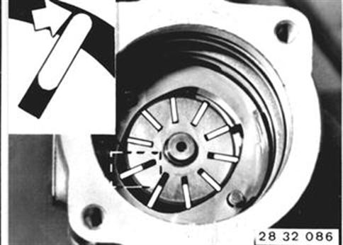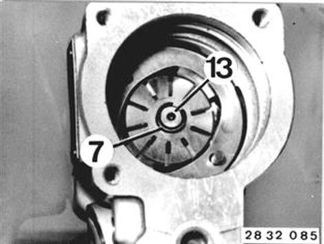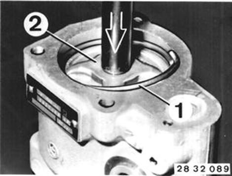 Mark position of holder (1) to pump body (2). Unscrew bolts and take body apart.