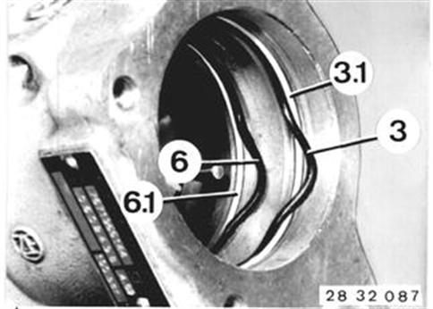 Insert O-rings (3 and 6). Support ring (3.1) is in front of and support ring (6.1) behind O-ring.