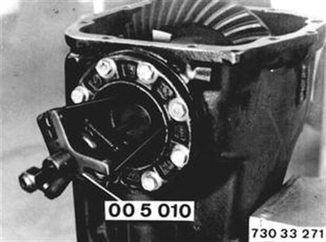 Vehicles after change point in 1982 REPLACING SHAFT SEAL FOR DRIVE FLANGE - Final Drive Removed - Remove final drive - see 33 10 010 in pertinent model repair manual microfiche beginning with 1985 models. Mount final drive on Special Tool 33 1 010. 33 10 010