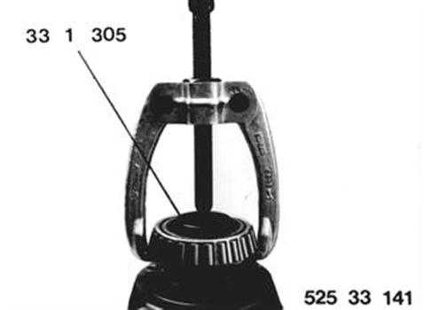 Pull off taper roller bearings through openings in differential case with a standard puller and Special Tool 33 1 305. Installation: Press on taper roller bearings cold. Replace defective taper roller bearings. Further procedures are identical with those for "Replacing Locking Differential" - 33 14 011. 33 14 011