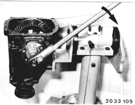 Check slip torque* of differential lock by holding one and driving other differential side gear. Make up tool locally for this purpose by, for example, welding a nut on a drive flange which is no longer required. | ![]() |
