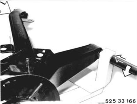 Swing trailing arm to correct position and push in dowel pins 33 3 005. It should be possible to turn the dowel pins by hand. | ![]() |